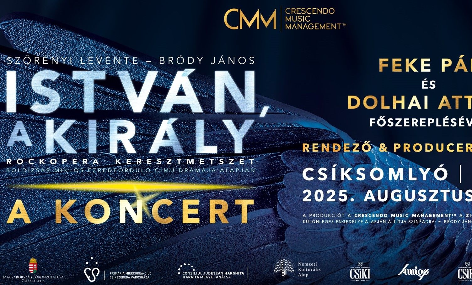 2025-ben - 42 évvel a rockopera magyarországi ősbemutatója után - Szent István királyunk államalapításának ünnepéhez kapcsolódóan szeretnénk újra megtölteni a csíksomlyói nyerget. A legnépszerűbb magyar rockoperát Feke Pál (István király) Junior Prima és Artisjus-díjas magyar színész, énekes és Dolhai Attila (Koppány vezér) Jászai Mari-díjas magyar színész, musicalénekes, operetténekes, érdemes művész főszereplésével tekintheti meg a nagyérdemű közönség.